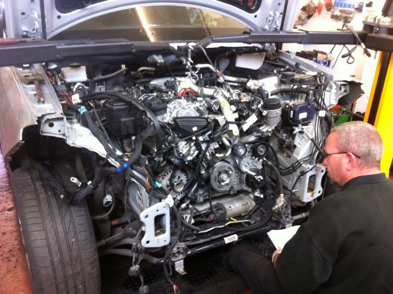 The following photos are examples of rather complex jobs we have undertaken recently. They range from a 1960’s Mk II Jaguar rewire, which involves the stripping of the entire interior of the vehicle, to a Mercedes ML 65 that had suffered a seized engine due to water ingress, to a Porsche 911/993 that had also suffered a seized due to a broken timing chain.